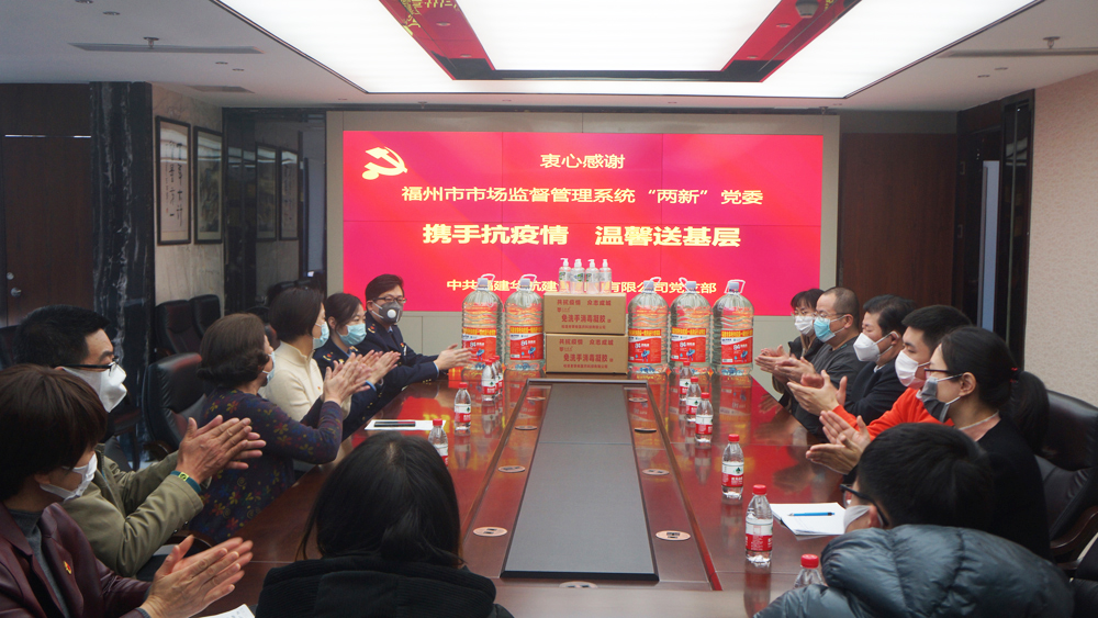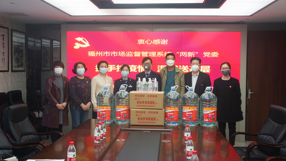 316日下午,福州市市场监督管理系统“两新”党委黄红霞主任一行莅临我司调研指导,并向我司赠送消毒水、免洗洗手液等防疫物品。