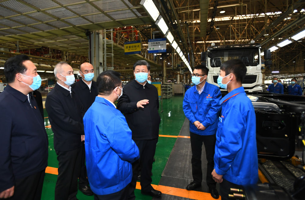 422日,习近平在陕西汽车控股集团有限公司了解企业复工复产情况。新华社记者 谢环驰 摄