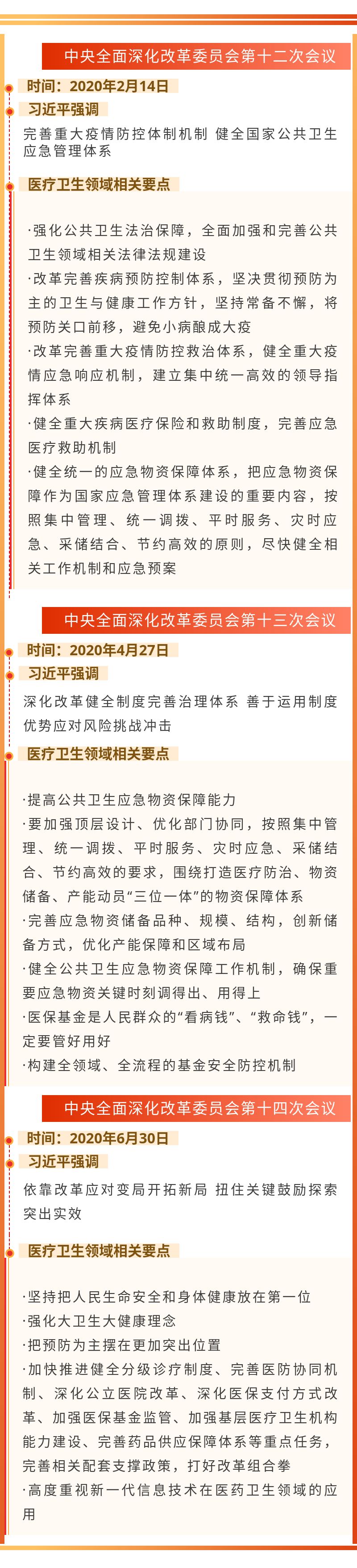 医疗保障制度和体系,是中央深改委会议长期关注的内容。新冠肺炎疫情来袭后,中央针对因疫情暴露出来的医疗卫生体系的短板和不足,立足当前、放眼长远,围绕这一重大改革主题,作了出全面动员、全面部署。