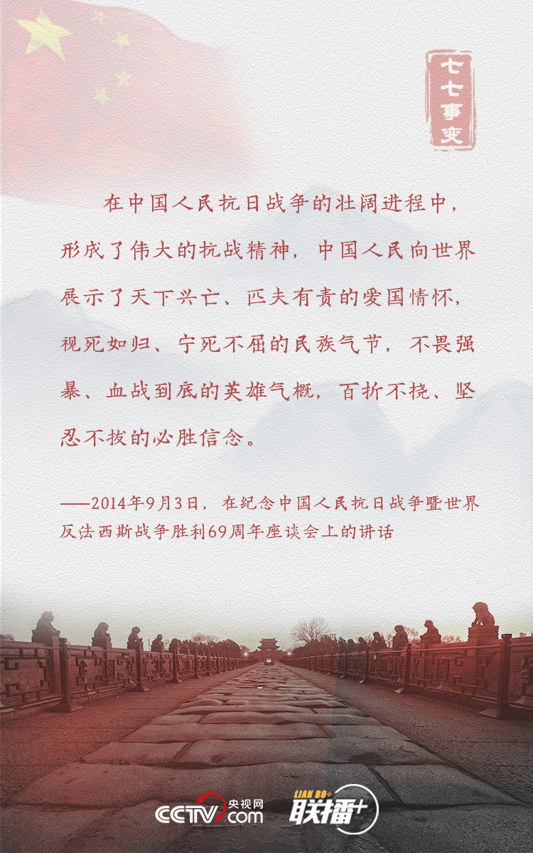 联播+“伟大的抗战精神,永远是激励中国人民克服一切艰难险阻、为实现中华民族伟大复兴而奋斗的强大精神动力。”