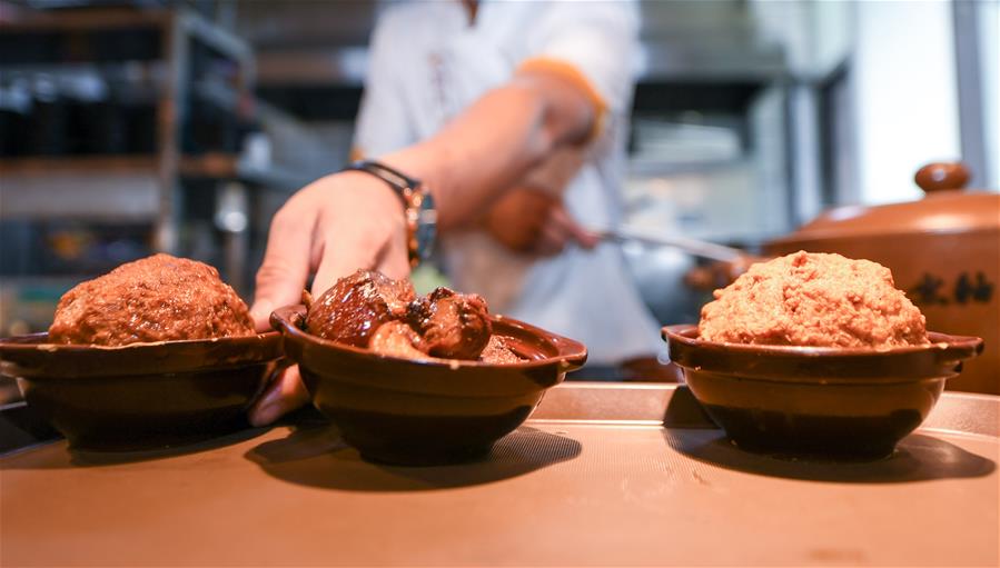 在长春市砂唐居餐馆,厨师在做小份砂锅菜(8月16日摄)。新华社发(颜麟蕴 摄)