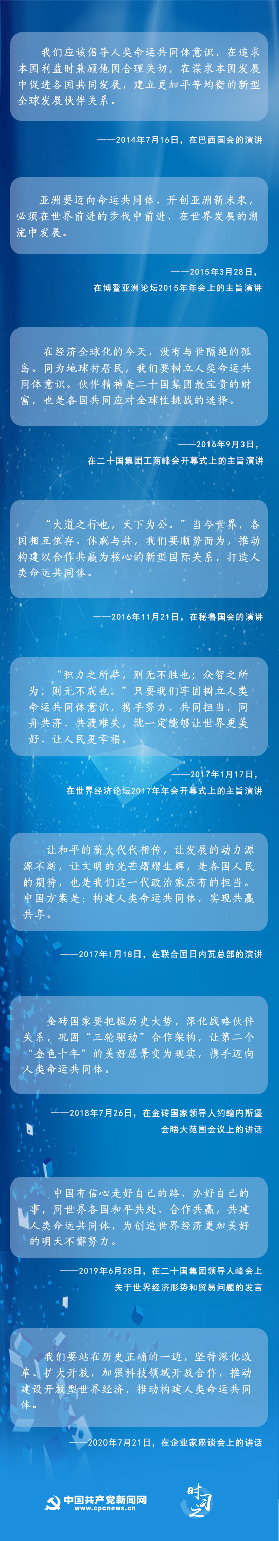 此后,习近平多次倡导构建人类命运共同体。