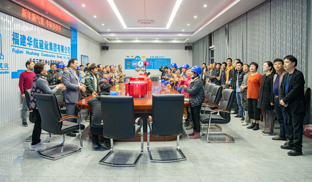 华灯初上,夜幕降临,华航集团董事长、党支部书记张华官,陈益魁总经理等领导和党员同志们来到项目部年夜饭现场,与一线建设者们共同欢度节日。在彩花、汽球妆点下的年夜饭现场,不时传出阵阵欢声笑语。张华官书记邀请大家共同举杯,他说,你们积极响应国家号召,主动放弃与家人团聚的机会,为疫情防控和增产增效贡献自己的力量,这样的付出让人感动也值得珍视,企业会扎实做好各方面保障,让你们在福州度过一个美好的春节。