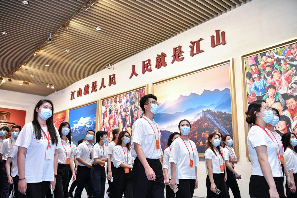 在北京,新党员代表在中国共产党历史展览馆举行入党宣誓活动并参观“‘不忘初心、牢记使命’中国共产党历史展览”。新华社记者殷博古摄