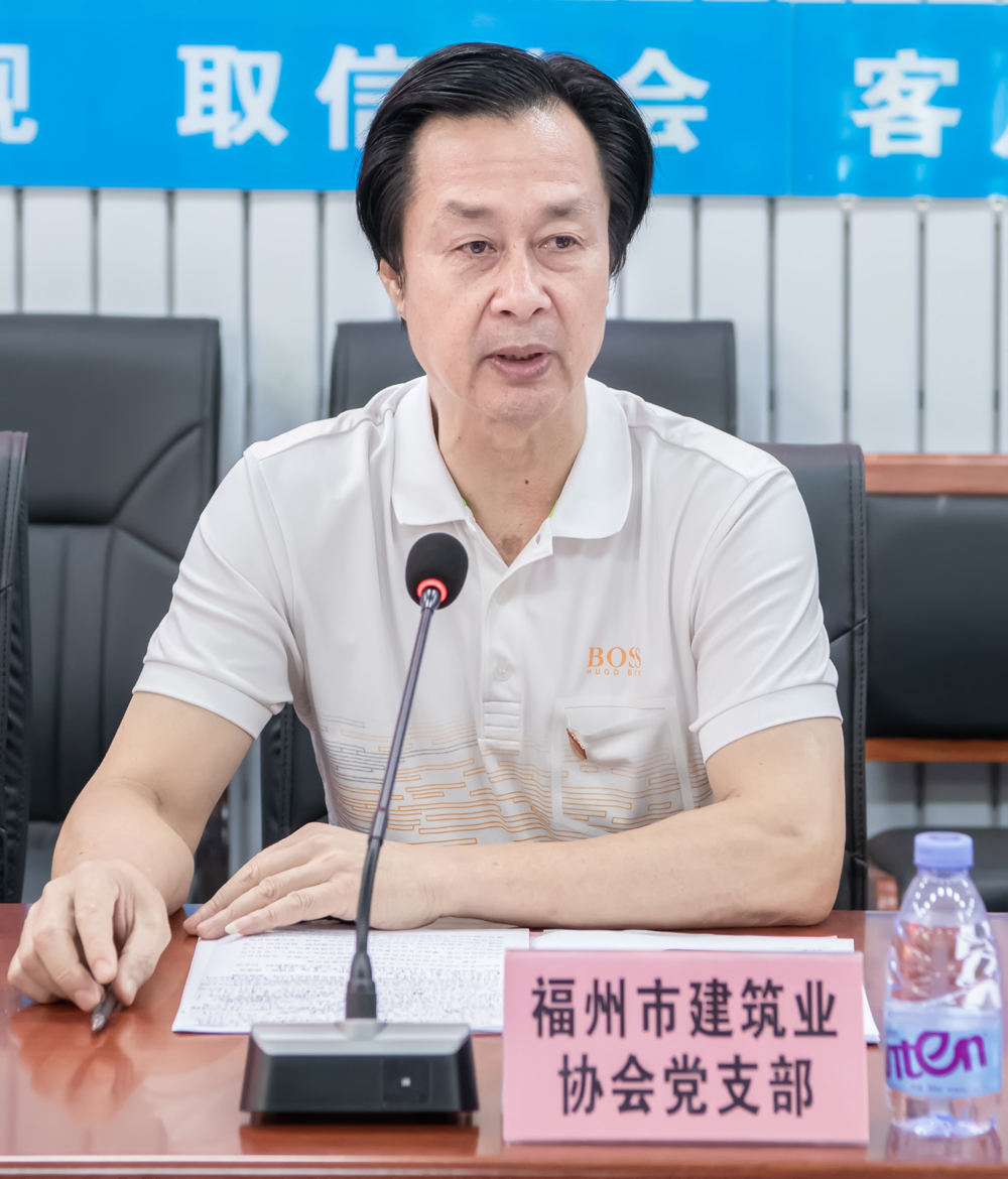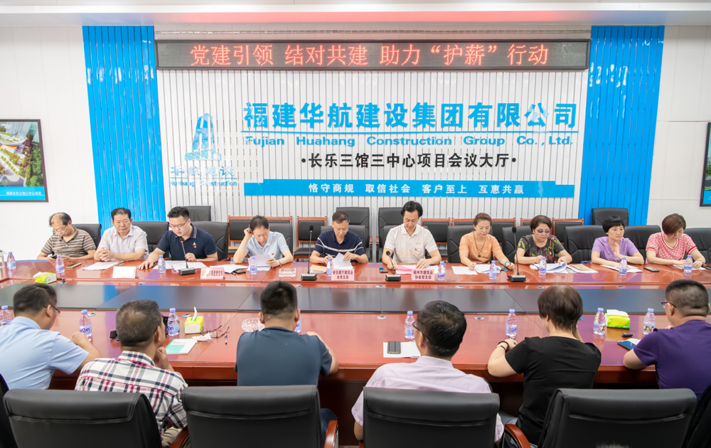 8月25日上午,省住建厅建筑业处党支部、市建协党支部、华航公司党支部、“三馆三中心”项目部临时党支部在长乐“三馆三中心”项目部开展“党建引领 结对共建 助力‘护薪’行动”主题党日活动。省住建厅建筑业处党支部肖建禄同志(纪检干部、二级调研员),福州市建筑业协会党支部书记、会长施忠旗,秘书长王斌,华航公司党支部书记、董事长张华官,各支部党员代表、项目部一线建设者共30多人参加活动。活动由张华官书记、董事长主持。