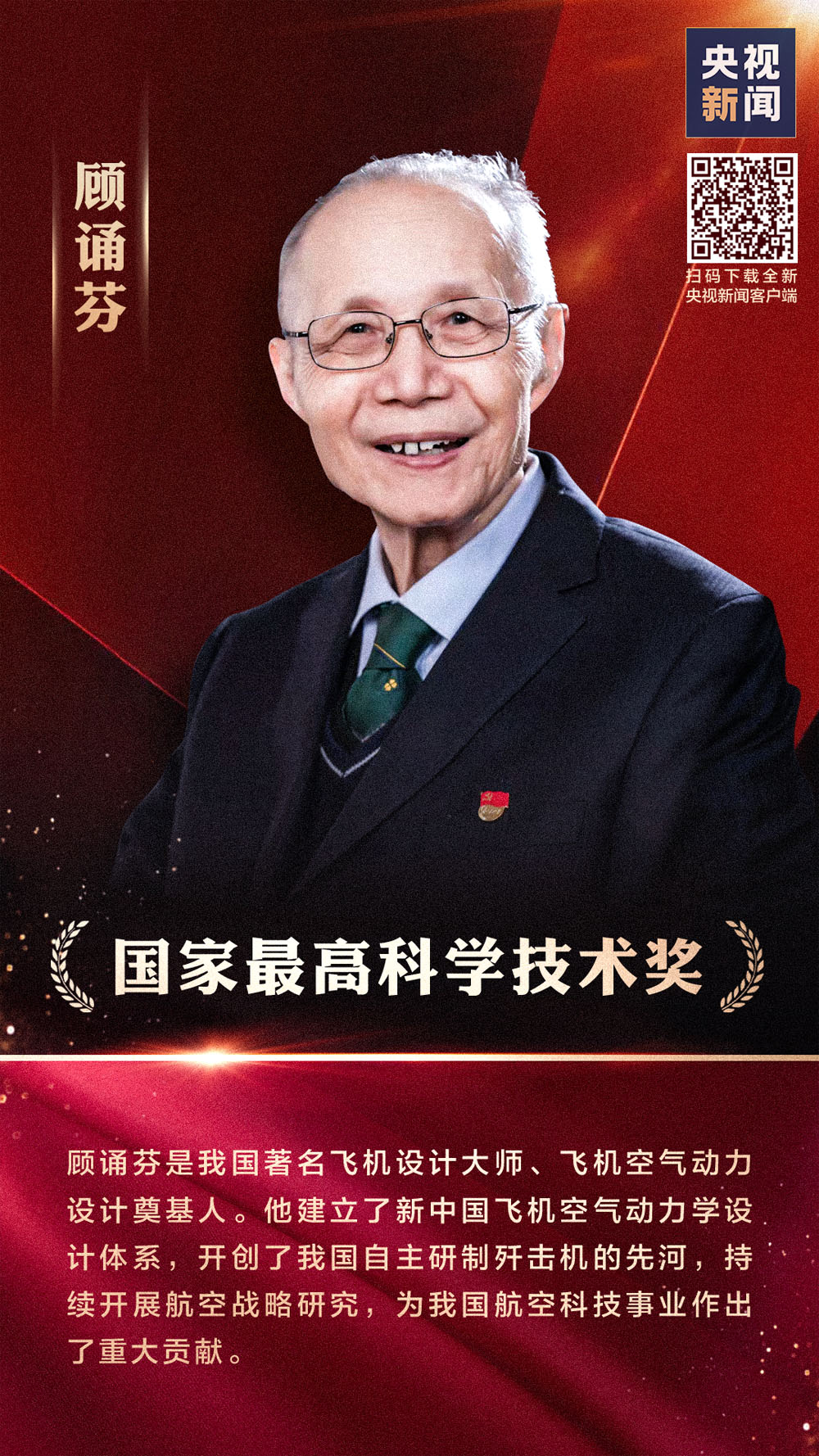 顾诵芬是我国著名飞机设计大师、飞机空气动力设计奠基人。他建立了新中国飞机空气动力学设计体系,开创了我国自主研制歼击机的先河,持续开展航空战略研究,为我国航空科技事业作出了重大贡献。