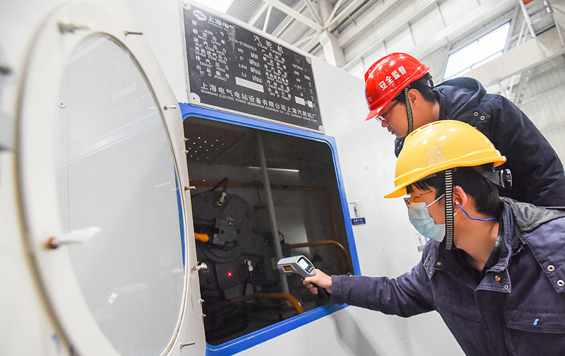 2020年12月10日,湖北省荆州市江陵县应急管理局的工作人员在湖北华电江陵发电有限公司检查设备运行情况。