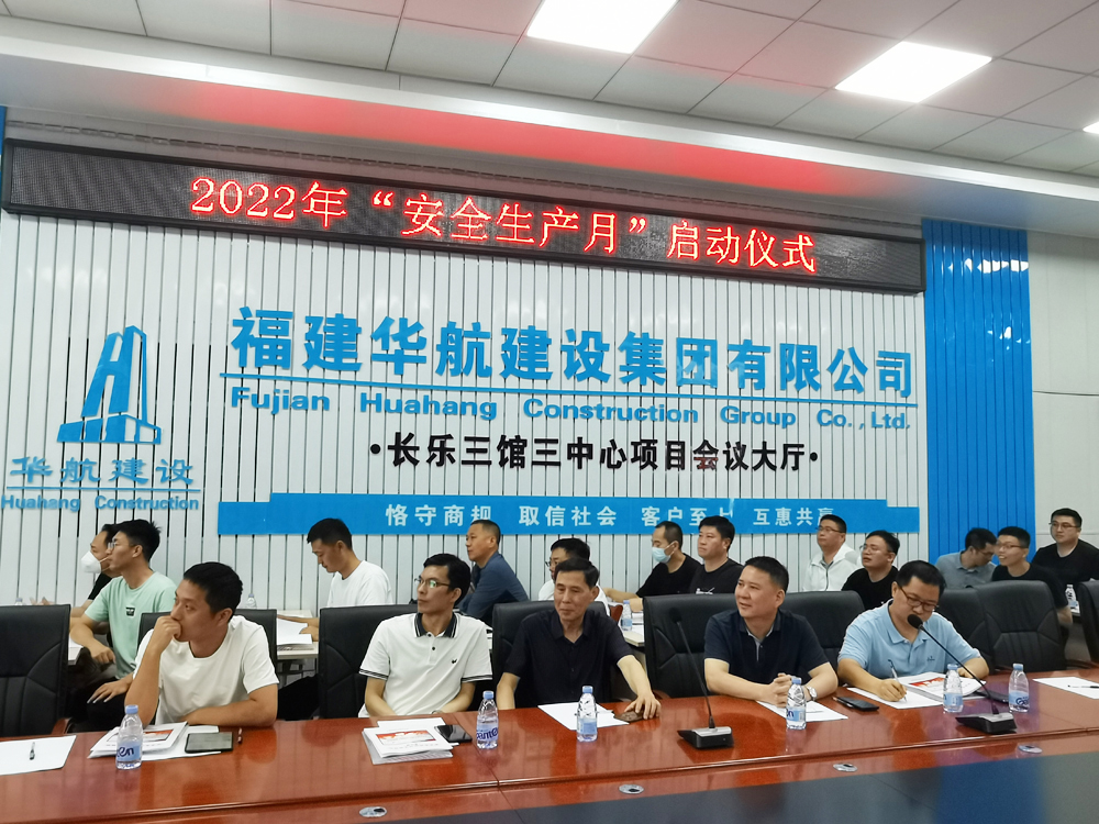 今年6月是第21个全国“安全生产月”,为践行“遵守安全生产法 当好第一责任人”活动主题,福建华航建设集团于6月6日在长乐区三馆三中心项目部大会议室举办集团公司2022年“安全生产月”启动仪式暨上半年质量、安全生产形势分析会。集团公司领导班子、总部各部门负责人、项目经理、安全员等80多人参加会议。福建华航建设集团阮伏球总经理、福州市建筑业安全协会陈恒秘书长出席会议。