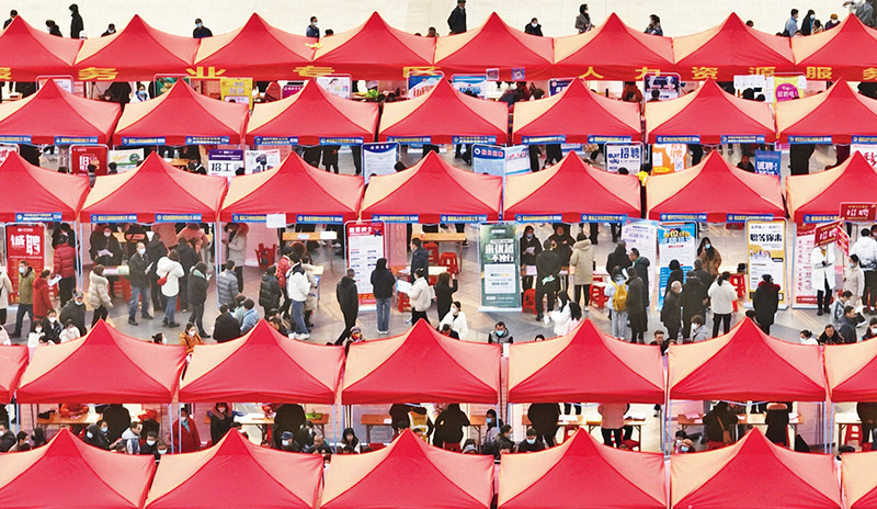 新春伊始,各地举行人才招聘会,吸引众多求职者前来应聘。图为202321日,求职者在湖北襄阳人民广场举行的招聘会上了解岗位情况。 新华社发 谢勇/