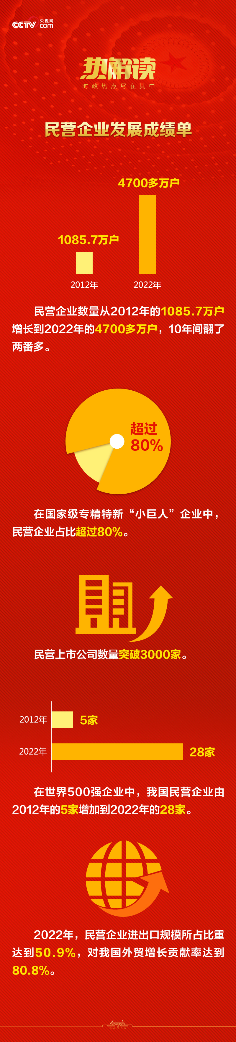 2023年政府工作报告再次强调,切实落实“两个毫不动摇”,依法保护民营企业产权和企业家权益,鼓励支持民营经济和民营企业发展壮大,支持中小微企业和个体工商户发展,构建亲清政商关系,为各类所有制企业创造公平竞争、竞相发展的环境,用真招实策提振市场预期和信心。