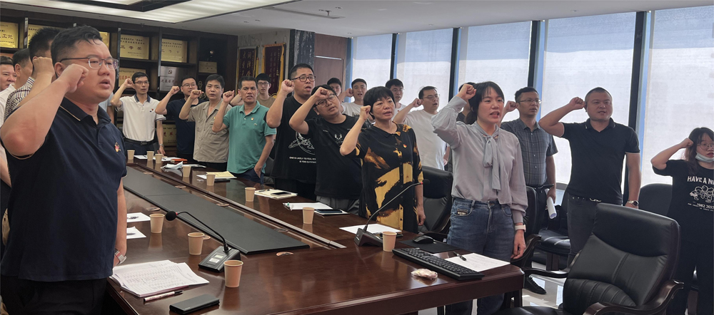 主题党日活动在全体党员激昂高唱国际歌中拉开了帷幕。由张华官书记领誓,全体党员重温了入党誓词,铿锵有力的誓词让在场每个人都深受心灵的震撼和洗礼,汇聚起矢志不渝跟党走的磅礴力量。